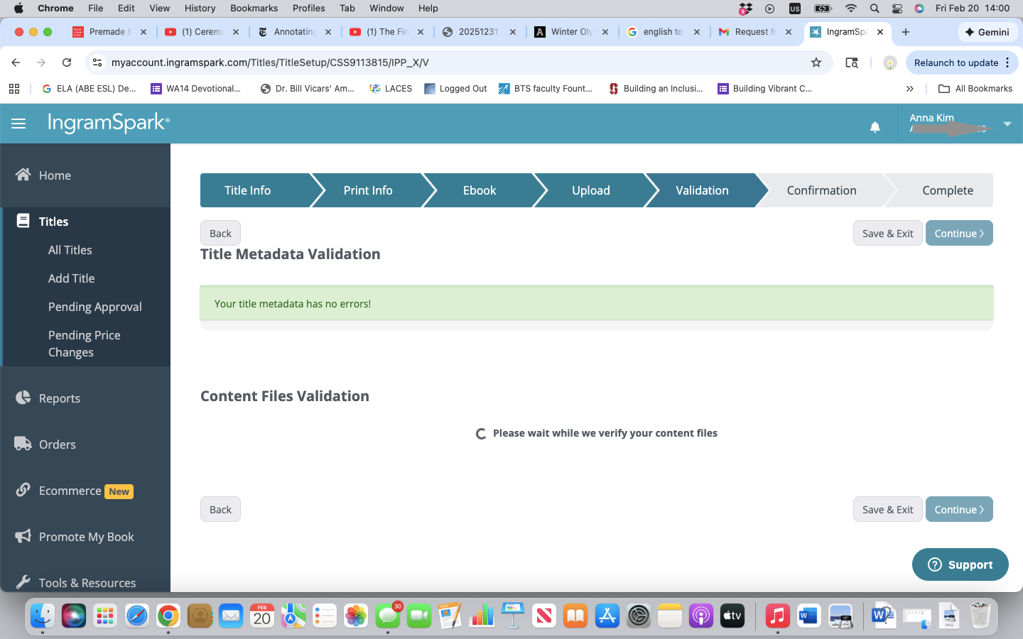 So OK. Cool. I made my Ingram Spark Account and uploaded everything a couple of weeks ago (took about an hour) — except the cover, which I knew needed other specs than Amazon’s. So OK. I contacted the cover designer and got that cover.